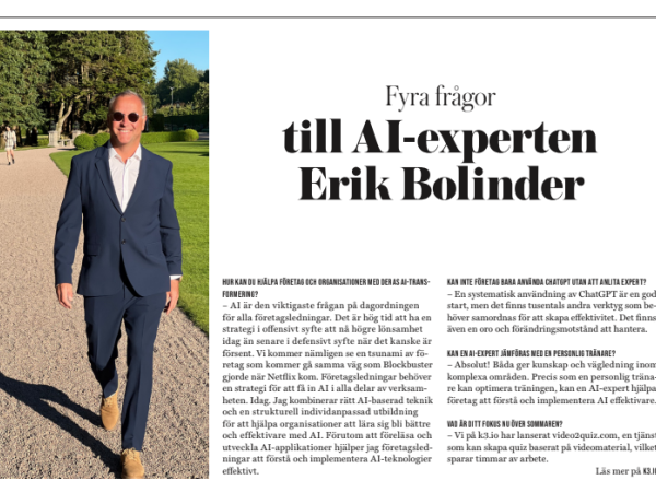 4 questions to the AI evangelist Erik Bolinder in Dagens Industri
